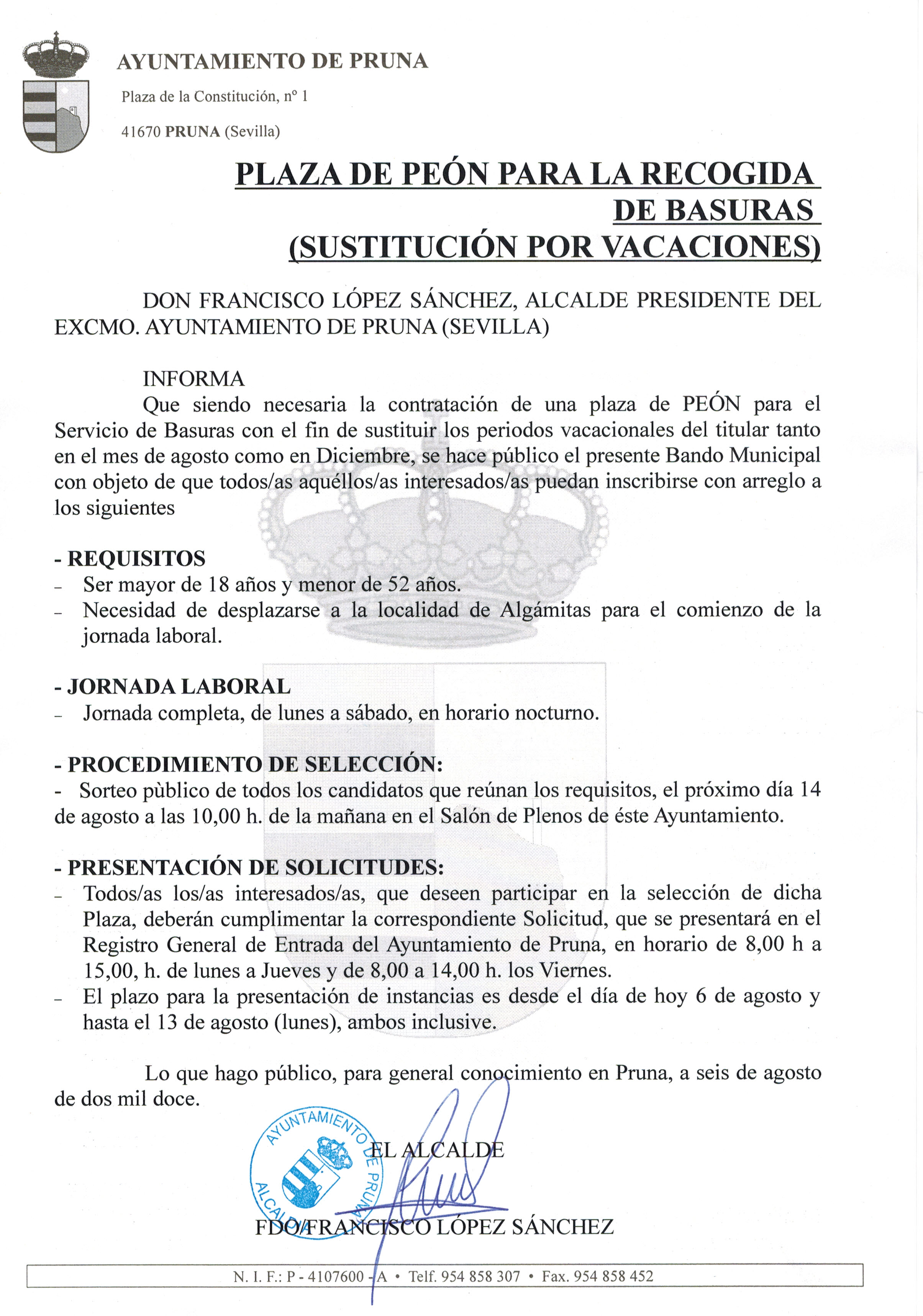 PLAZA DE PEON PARA SERVICIO DE BASURAS